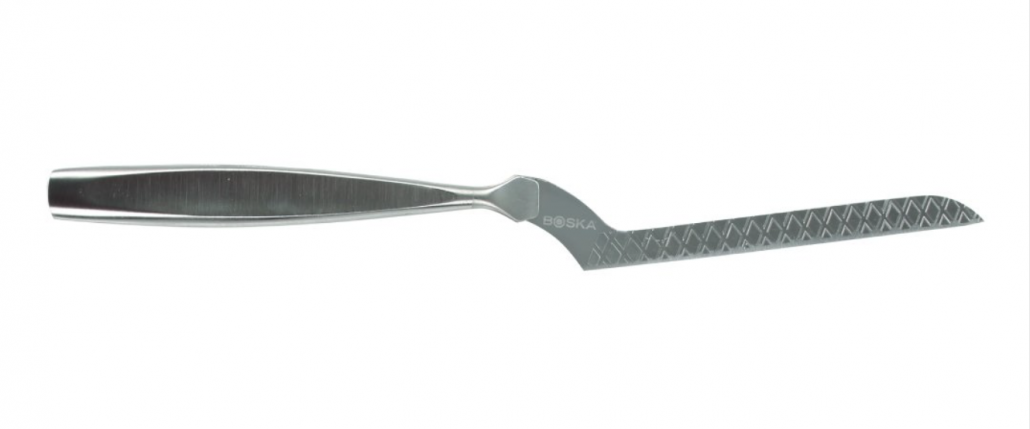 Staat er brie of camembert op tafel? Zorg dan dat je dít speciale gereedschap in huis hebt / haalt. Het smalle lemmet zorgt in het bijzonder bij deze kaasspecialiteiten voor – opnieuw – weinig weerstand, waardoor de kaas niet blijft kleven en de vorm behouden blijft.